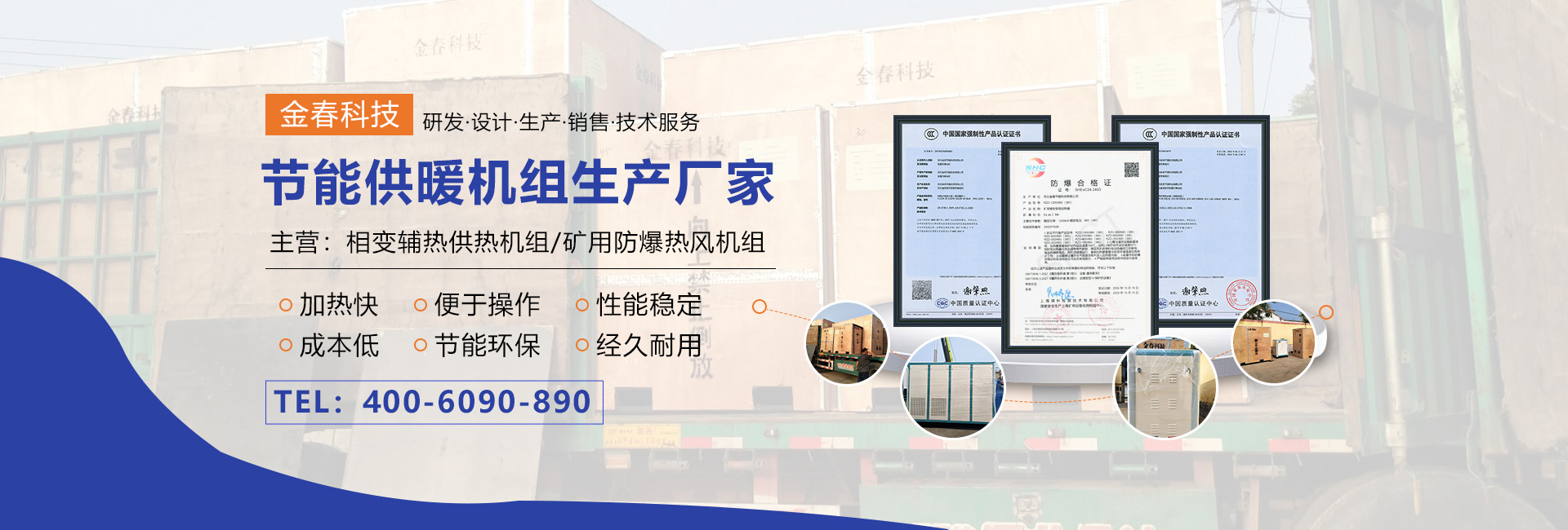• 多年專注生產(chǎn)相變輔熱供熱機組、礦用防爆熱風(fēng)機組,可代替燃煤、燃油、燃氣鍋爐